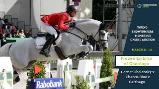 With Cornet Obolensky as sire and Chacthaga (Chacco-Blue x Carthago) as dam, this frozen embryo is bred from a combination where proven 1.60m genetics meet an exceptionally strong performance family. Cornet Obolensky has been one of the most influential sires in the world for years, renowned for quality, reflexes and scope, traits that are strongly supported here by a damline packed with sport at the highest levels.