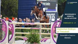 Performance genes of Emerald van het Ruytershof combined with the meritorious Grand Prix mare Tinkabell 12! With Rodrigo Pessoa, this mare jumped to good results at the highest level. For example they ended up second in the 1.50m class and took the 8thplace in the 1.60m Grand Prix (double clear) at CSI5* Lyon. Later she took part in the Nations Cup final in Barcelona under Angelie von Essen, where she ended up second. Granddam Madonna also produced the 1.40m level showjumpers Flinstone (s.Ukato) and Talent (s.Kigali) as well as the international 1.35m jumper G-Star 8 (s.Ukato). This embryo thus comes from an interesting damline from which a number of international horses have already emerged.
