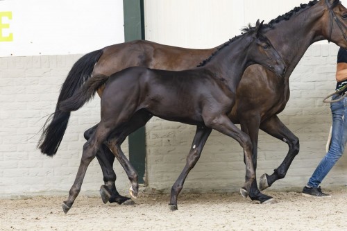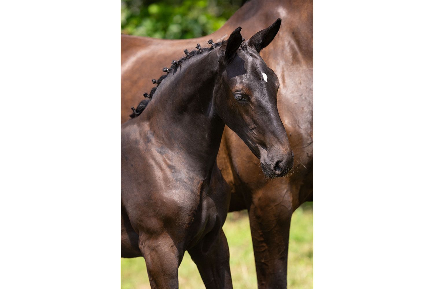 Dam Vienna de Mauretus Z is a young half-sister to the international 1.50/1.55m-level competing Karamel de Mauretus Z of Jack Whitaker, and Bolero 111 ridden by Darragh Kenny. Granddam Walentina van ’t Merelsnest has also foaled the 1.40m performer La Luna de Mauretus. This performance family has already produced standouts such as the Olympic team medalist Sapphire ridden by McLain Ward and Jur Vrieling’s WEG and EC competing stallion Glasgow van ’t Merelsnest, as well as other international 1.50/1.60m horses like Omano BC and Qarco van ’t Merelsnest. Sire Jaguar vd Berghoeve competed at the WEG in Tryon with Jasmine Chen, and his oldest offspring are already performing at 1.50m-level.