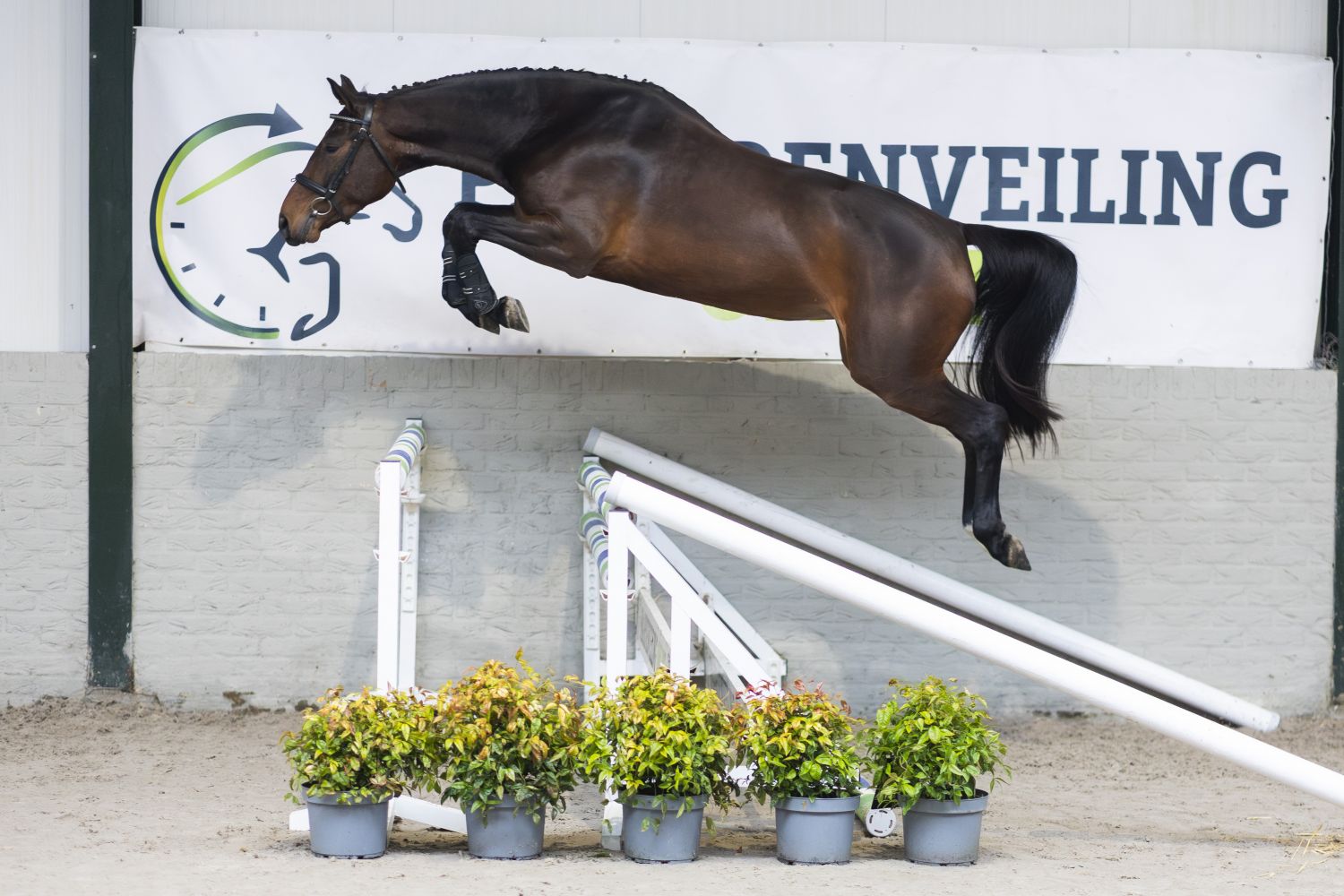Last year, Sofie van Berghem already made an impression with her jumping qualities at the KWPN mare inspection, where she was awarded the ster predicate with 80 points for free jumping. Sire Opium JW van de Moerhoeve competes successfully at 1.50m-level with Lillie Keenan and represents the strong Van ’t Roosakker line. His oldest offspring are beginning their international careers at the age of seven, and this Sofie van Berghem also has a bright future ahead of her. Her dam Nienke is a half-sister to the international 1.40m-level competing Isabel (s.Captain Cooper) ridden by Tom Schellekens. The same rider competed at 1.55m-level with Casander (s.Lord Z), who was bred from this direct damline as well.