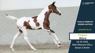 Two-time stallion competition winner New Pleasure VDL has made an excellent start to his international career, competing at 1.45m-level this summer under Hessel Hoekstra at the prestigious Aachen show, where he earned top placings in the Youngster Cup. His oldest offspring are showing the same jumping talent as their sire, and here he is paired with the damline of the pinto stallion Samber (s.Pericles xx). This pinto filly Vogue is a real eye-catcher. Her granddam Unicorn is a half-sister to the international jumper Merlijn (s.Samber) and represents a versatile damline that also produced international eventers as well.