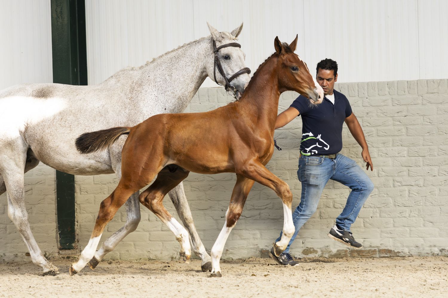 Sire VDL Mindset ES, ridden by Hessel Hoekstra, leaves no doubt about his excellent qualities and is already performing successfully at 1.45m-level. This striking son of Aganix du Seigneur has been turning heads since an early age and is also making rapid progress as a sire. In this pedigree, he is combined with the renowned Niki line. In combination with Glenfiddich VDL, dam Eliki already produced the international 1.35m-level performer Magnum. Eliki herself is a half-sister to the international 1.55m horse Jiniki (s.Dallas VDL), ridden by Hans-Dieter Dreher, as well as to the 1.45m horse Bravour (s.Padinus), ridden by Nadège Janssen. Further along, this damline continues with a half-sister of the 1.40/1.45m-level jumpers Whipped Cream and Uniki.