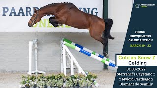 Cold As Snow Z is nog erg groen en kent op dit moment nog weinig, maar beschikt over veel potentie. Op de videodag oogde hij nog wat onwennig, maar hij gaat zeker meevallen. Een paard waar je echt blij van gaat worden naarmate hij verder ontwikkeld.