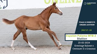 Espolon Paloma MTB Z stamt af van één van de meest besproken hengsten van zijn generatie: de uitstekend presterende Ermitage Kalone, waarmee Gilles Thomas vorig jaar Belgisch kampioen werd en zich nu presenteert als vaste waarde voor het Belgische team, waarmee hij binnenkort zelfs te bewonderen is op de Olympische Spelen van Parijs! Deze excellent springende Catoki-zoon is hier gekoppeld aan een fantastische merrie. Moeder Worena bracht namelijk al zes internationale springpaarden, waaronder de Balou du Rouet-zoon Baranus. Dit paard won zowel de 1.60m-Grand Prix van Rockwood als de 1.55m-Grand Prix van Humlikon. Worena bracht daarnaast ook de 1.50m-geklasseerde Bareno (v.Balou du Rouet) en is zelf een halfzus van de 1.45/1.50m-paarden Chanus PS (v.Chacco-Blue) en Corona Z (v.Carthago).