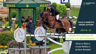 Dit embryo is gefokt uit de rechtstreekse moederlijn van de Grand Prix- sport- en fokhengst Kashmir van Schuttershof, die op de Olympische Spelen zijn stempel drukte met twee nakomelingen in de individuele top-vijf. Via de Grand Prix-hengsten Conte Bellini en Action-Breaker gaat deze moederlijn namelijk terug op de moeder van Kashmir. Deze Fines van Kameren bracht daarnaast ook Kashmir’s volle zus, de internationaal 1.60m-geklasseerde Sissi van Schuttershof die door Jur Vrieling gereden werd. Gekoppeld aan deze Belgische prestatiestam is de uitzonderlijke topvererver Chacco-Blue, die zich tot ‘s werelds beste fokhengsten mag rekenen dankzij nakomelingen op het hoogste niveau als Explosion W, Blue Movie, Chalou, Stardust en H5 Chaganus.