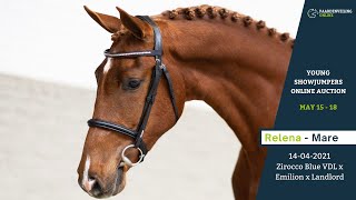 Vader Zirocco Blue VDL weet zich meer en meer te onderscheiden als topvererver en staat momenteel vijfde op de WBFSH-ranking dankzij excellent presterende nakomelingen als Elysium, Glamour Girl, Zuccero, Eddie Blue en Hallilea. Ook de moederlijn van deze beloftevolle Relena staat hoog aangeschreven. Moeder Helena slaagde met louter 8’en voor de merrietest en is een volle zus van de internationaal 1.45m-geklasseerde G van Alistair Hippisley Gatherum. Via de goed verervende Emilion en Landlord gaat deze lijn terug op de Quick Star-dochter Ulena VDL, die een halfzus is van onder meer de internationale 1.50/1.60m-paarden Southwind VDL (v.Baloubet du Rouet) en Anderson VDL (v.Chin Chin). De lijn vervolgt met de bekende Europese kampioensmerrie Helena.
