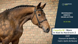 The oldest offspring of Cequita M is the seven-years-old international 1.30/1.35m showjumper Angel by Diamant Z (s.Aimar van het Polderhof) of Lennart Korsten. On the dam’s side this mare is a half-sister of several international showjumpers, including the on 1.60m level performing Wellington M (s.Quidam de Revel) of Kerry Brennan and the 1.40m showjumper Bequita M (s.Chin Chin). Her dam Requita M is in turn a half-sister of the international 1.50m showjumper Zyquita SR (s.Quick Star) ridden by Antonio Garofalo. With the influential top progenitors Diamant de Semilly, Cash, Quito de Baussy and Grannus this breeding mare has outstanding origins. This year she expects a foal sired by the Olympic stallion Hardrock Z who is making progress as a breeding stallion.